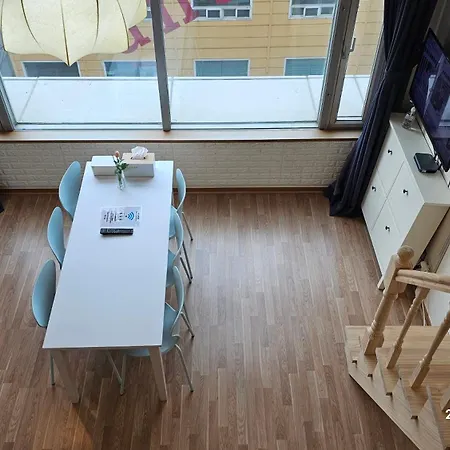 顧客用のキチネットがあります。 アパートは、弘大入口地下鉄駅から550メートル離れた場所にあります。